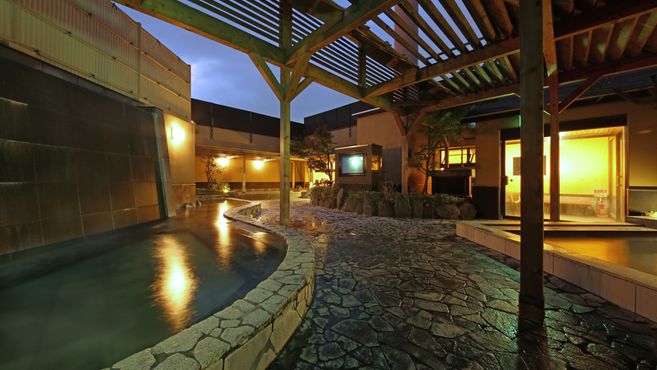 露天風呂は全て効能のある人工温泉となっており、中でも「絹の湯」は、ミクロの気泡により発生する超音波の作用で温熱効果が得られる日本初の設備です*★