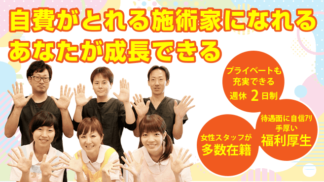 先輩・後輩、社歴関係なく話しやすい社風なので、やってみたいことや興味があること、「患者さん目線でのあったらいいな」など…どんどん発言してください^^ 希望があれば、新しいメニューや技術も柔軟に採用♪みんなで働きがいのある院をつくりましょう!