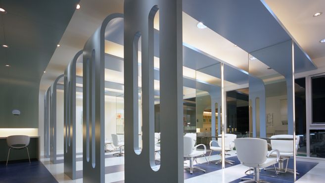 無色透明の空間で、お客様のタイプを選ばず誰にでもフィットするヘアスタイルを提供しようと創りました。