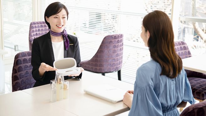 経験者であればこれまでの接客スキルを発揮できる環境です♪ですが未経験でも大丈夫!皮膚や美容の知識、モイスティーヌの商品、アフターフォローまでトレーナーを中心にみんなでサポート♪不安があればなんでも相談できる環境なので異業種からの転職で初ビューティーアドバイザーデビューだったスタッフもこの研修を受け(未経験で約3~6か月で独り立ち)、今では大活躍しているのでご安心ください