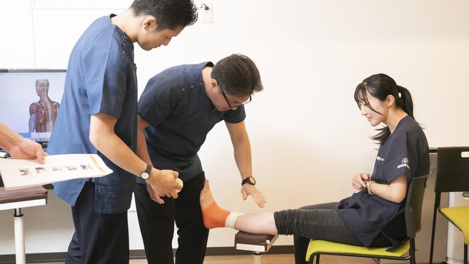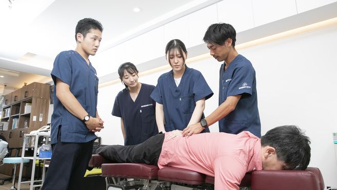 また、練習の場では、腰痛や肩こり、関節痛といった日常的な症状だけでなく、スポーツ外傷やリハビリの対応まで幅広く学ぶことができます。施術技術だけでなく、評価方法や患者様への声掛けなど、現場で必要な総合力を養えるのも大きな魅力です。実際の臨床で直面した課題を持ち寄り、すぐに練習に取り入れることができるため、成長のスピードが早いのも特徴です。