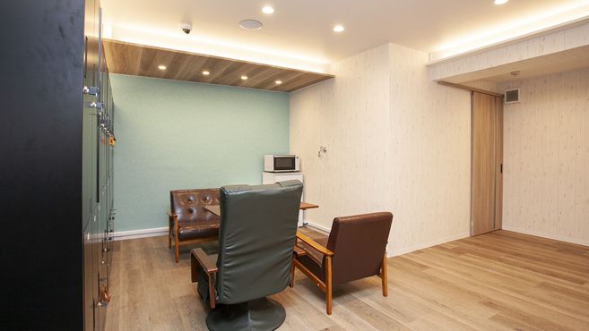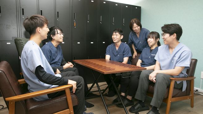 施術者は日々、多くの患者様と向き合い、体を使い、集中力を発揮しています。そのため、施術の合間にリラックスできる場所は欠かせません。休憩室では、仲間と和やかに談笑したり、一人で静かに体を休めたりと、思い思いの時間を過ごすことができます。メリハリをつけて働くことができるからこそ、施術の質も自然と高まります。