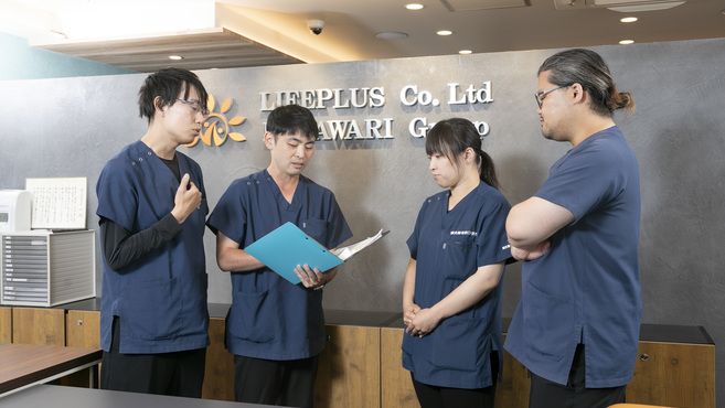 また、訪問事業部には、柔道整復師や鍼灸師、あん摩マッサージ指圧師といった国家資格を持つスタッフが在籍しており、それぞれの専門性を活かしながら意見を出し合っています。新人スタッフも、ここで先輩に相談したりアドバイスを受けたりしながら、安心して経験を積むことができます。訪問現場での工夫や患者様との関わり方など、現場ならではの学びが日常的に飛び交っているのが、この事務所の特徴です。