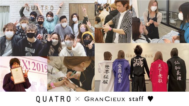 毎年、未経験で入社をしてきて、QUATROで技術を学びデビューするスタッフが多数います!一からしっかりと教え、徐々に入客していくので、接客の経験がない方でも大丈夫ですよ♪