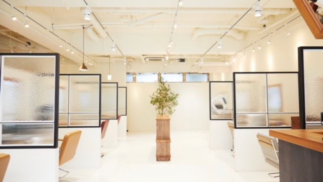 店内はホワイトで統一された、清潔感たっぷりの明るい空間。お隣が気にならない「曇りガラスの仕切り」があるから、目の前のお客様に全集中できますよ(^ ^)
