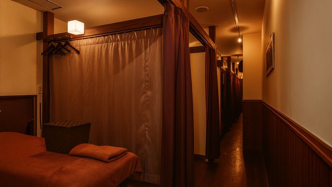 店内は茶色を基調とした、落ち着きのあるリゾート風の空間。ベッドは5台と適度な広さで、お客様一人ひとりにしっかり向き合える環境が整っています。