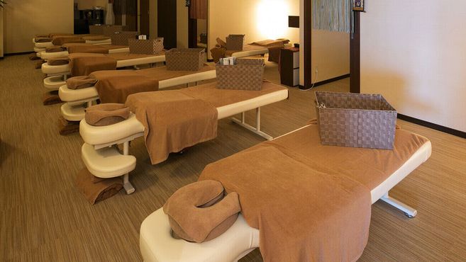 「遊ぶ」「楽しむ」要素を詰め込んだこだわりのお風呂や6種類の岩盤浴、200種類以上の豊富なメニューの食事、2万冊以上のコミックが読み放題できる1日中遊べる温浴施設内にございます。