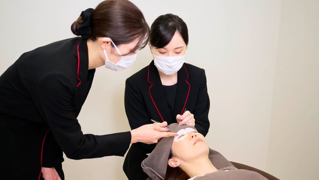 専門学校で美容師免許を取得しました。メイクにも携わり、なおかつ美容師免許を活かせる就職先を探している時に、ケサランパサランがまつげエクステンションを取り扱っていると知りました。ケサランパサラン自体は、もともと母が化粧品を使っていたので知っていましたが、まつげエクステンションのことは知りませんでした。まつげエクステンションの世界に深い興味をもつようになったのもその時からです。