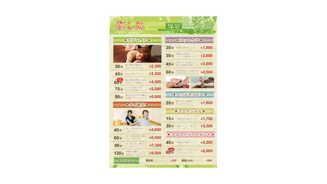 源泉かけ流しの湯で心も体も真に癒される♪ 男性・女性ともにご利用頂ける温浴施設内のボディケア&トリートメントを行うリラクゼーションスペースです。