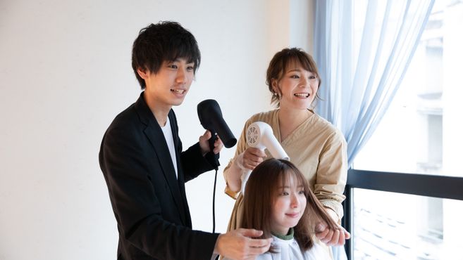 【3】クリエイティブ・海外・多角的なキャリア 撮影会、ヘアショー、海外勤務などのチャンスも豊富! ミルボンなどの外部講習や、見直しのためのカット講習など、デビュー後も学び続けられます。 また、やる気次第で「マツエク・ネイル」での独立支援も行っています。(※着付け・メイク導入は現在協議中。常に新しい可能性を探っています!)