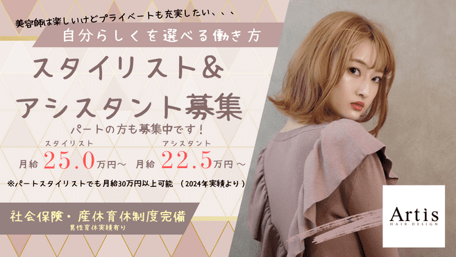 1番重要なのは、時間は命の経過であるという意識。 たとえ入社1年目の新卒さんでもオーナーでも「1日」は24時間、同じように流れます、そんな命の経過の時間というものを無駄にしないよう、メリハリのあるサロン環境を大切にしています。例えば技術のスピード、時間をかけてよいものを作れたとしてもお客様の時間を美容師が奪ってしまってはいけません。適正時間の中で高いクオリティを作り、たくさんのお客様に満足いただくことで豊かな美容師人生が送れるのではと私は思います^^ 同じようにスタッフの時間も大切!なるべく練習は営業時間内に行い、何もない日は19時きっかりに帰れるシステムを作りました。大切な家族や友達と過ごせるように月1回日曜休みも作りました。 個人の特性に合わせた練習カリキュラムを組めるのも個人店の長所です。美容師としてレベルアップ出来るような場所を求めている方はぜひ一緒に働きませんか?ご応募おまちしております!