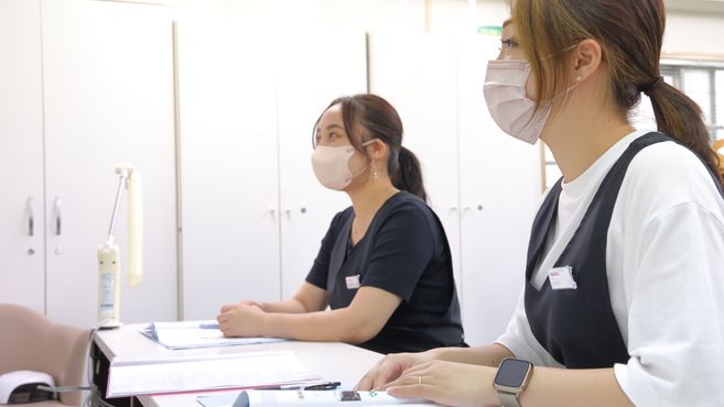 先輩スタッフと片手ずつ担当をして、