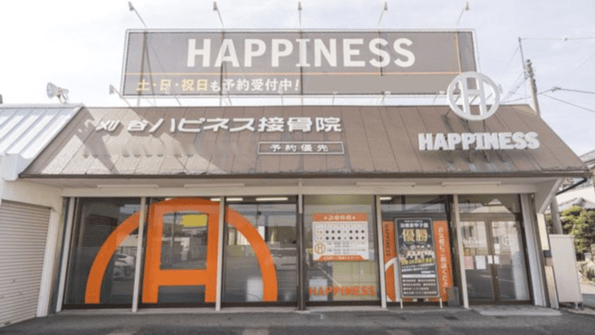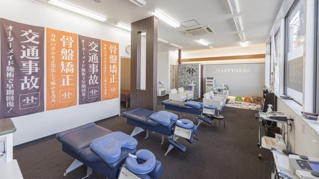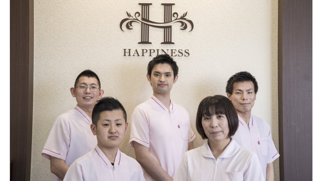 - モットーは「美と健康はハピネスから」。技術を手に・知識を頭に・喜びと感動を患者様に与え、幸せと満足、そして地域貢献を目指す治療院グループ