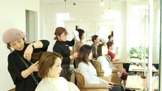 閑静な住宅街の中にあるおしゃれなお店です。共に働くスタッフ一人一人が相手のことを思いやり、仲間を大切にしながら、一人一人がやりがいを感じ、自分の働き方に合わせ美容師を楽しんでいる職場です。ママさん美容師多数在籍!世代のギャップなどもなく、同世代の方とお仕事ができます。