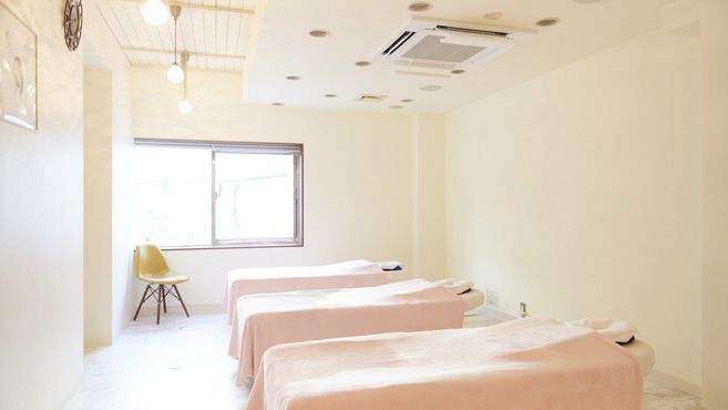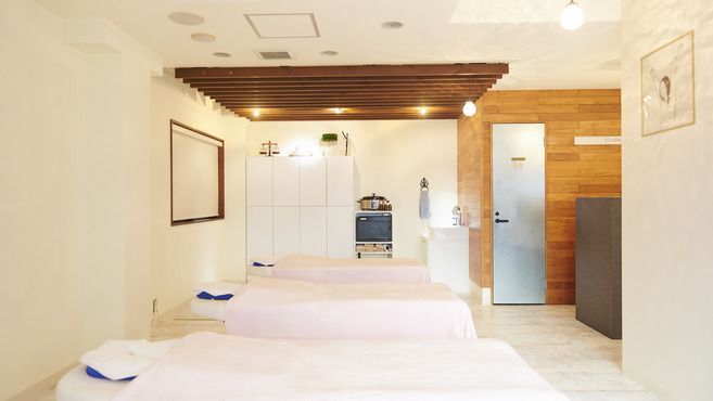 白基調のおしゃれな施術ルームはオープンスペース♪あえて個室にしないことで、トラブル回避にもなっています^^ 安心して働ける環境って大切ですよね。お客様からも好評です☆