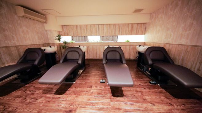 シャンプー台のライトは少し暗めにしてますので、お客様も眠りに入る方が