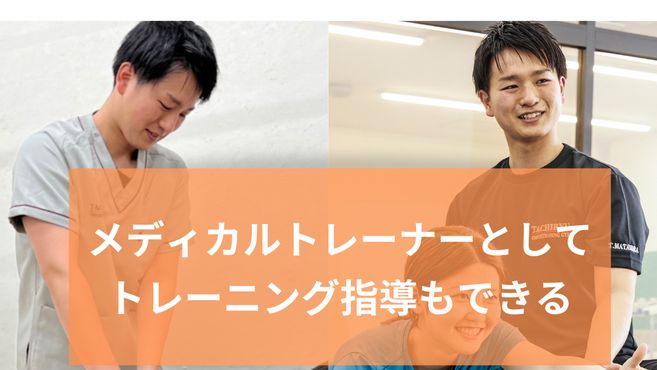 この院の良さは何と言っても「アットホーム感」と「地域に根ざしたコンディショニングセンター」としての地位を確立するために、スタッフが切磋琢磨しているところです。トレーニングジム併設型ということもあり、ジュニアアスリートも含め、アスリートや様々な症例を診ることができていますし、トレーナーとの連携でトレーニングやコンディショニングの知識も増え、自身の治療の幅や考え方にも良い影響があると感じています。