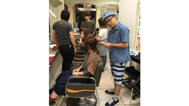 資生堂プロフェッショナルなどから外部講師をお招きして、臨店講習会を実施。また、1人1人の成長度合いに合わせた外部講習会への参加も推奨しています。技術者デビューしてからも、カットコーチアカデミーなど、自身の成長と後輩育成の為のスキルを身につけられる様、教育者を育てる講習会にも任意で参加させてたりしています。サロンが認定した講習会への参加は、交通費支給・出勤日に参加できます。