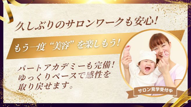 「生涯現役の美容師でいたい」「出産しても働きたい」「サロンオーナーになりたい」「ヘア以外の技術も身につけたい」 美容師の数だけ、その想いがあります。そして美容の道もひとつではありません。美容師・カラーリスト・スパ二スト・アシスタント・アイリスト・エステティシャン・フロントスタッフなど、美容に関わる多様な働き方に柔軟な対応をしています。美容という職業で夢を叶えたい方を精一杯応援しています!
