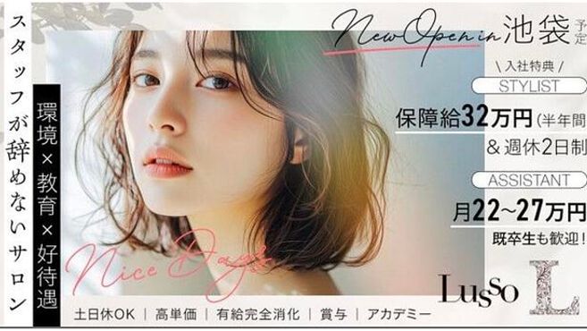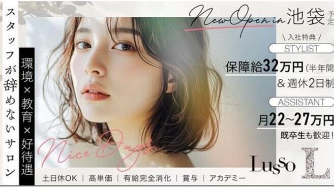 - 池袋~目白エリアに4店舗展開!丁寧&リラックス空間を大切にし、独自技術のヘッドスパが大好評☆自社開発商品を活用するなど薬剤にも徹底的にこだわり、質の高いサービスをご提供するサロングループ《Lusso(ルッソ)》