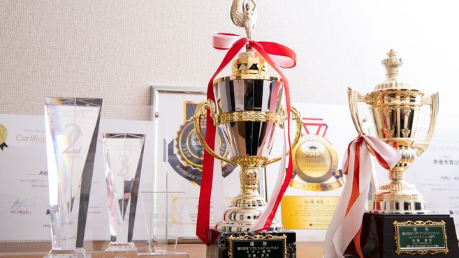 他にも各コンテストで受賞した盾が、研修専用サロンに置いてあります。