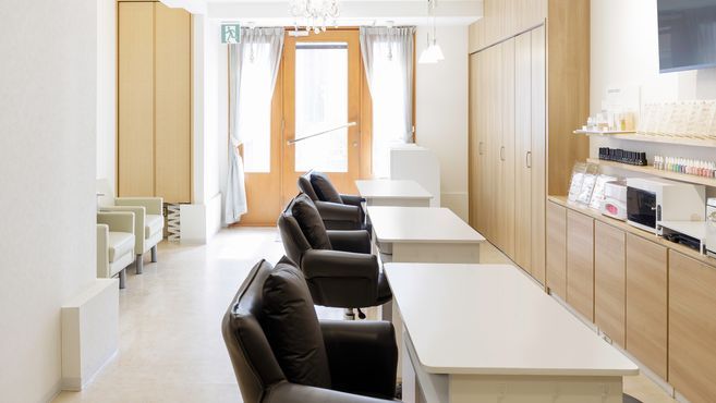 千歳烏山駅北側、旧甲州街道沿いの千歳烏山駅北口バス停隣りに、落ち着いてネイルをゆったりと楽しんでいただけるおしゃれな空間をつくりました。お客さまからはリラックスして施術時間を過ごせると好評なんですよ♪