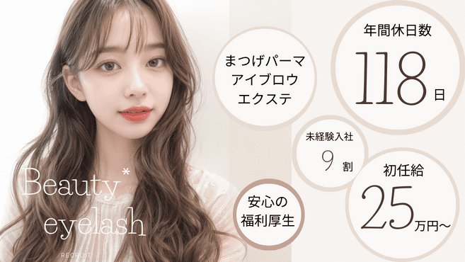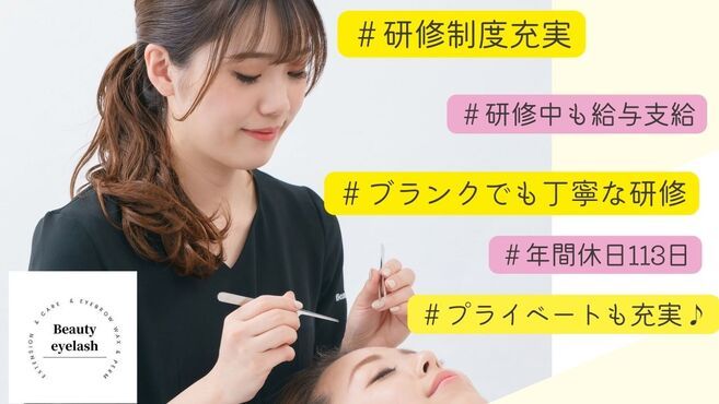 まつげパーマ、まつげエクステ・アイブロウ・アップワードラッシュなどの技術を習得していただきます。