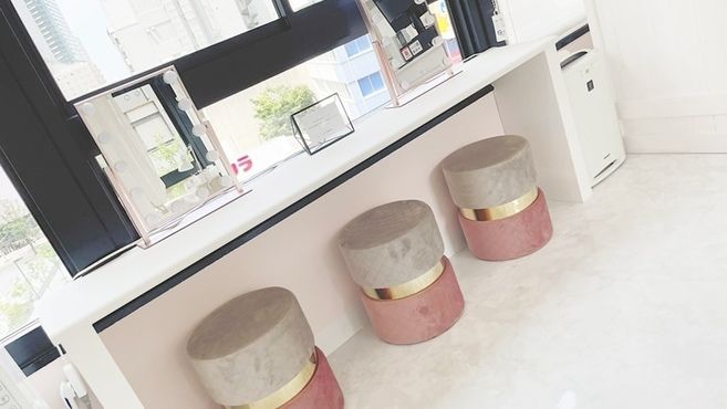 を表現した、淡いピンクやベージュ系を意識した店内!