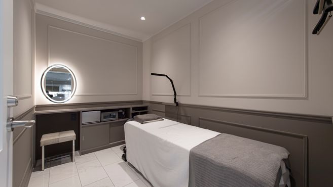 カーテンの仕切りをつけ、お客様と親密な接客とリラックスできる空間を提供しています。