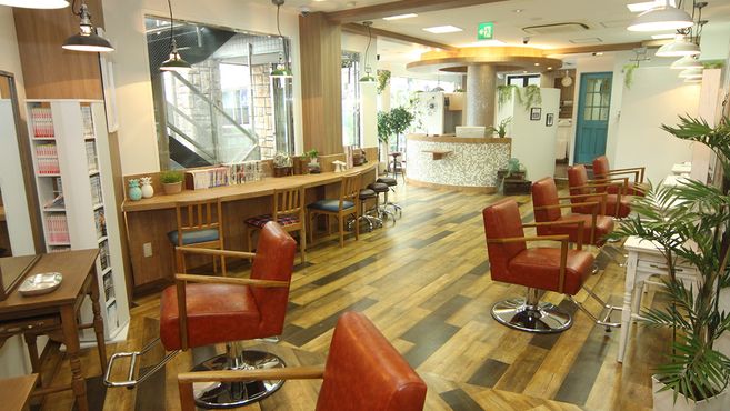 サロンは自然光が射すナチュラルテイストのカフェ風サロン♪スタッフ同士上下関係がないから和気藹々と楽しく過ごせる雰囲気です♪助け合いながら無理なく働けるからストレスなく充実した美容師ライフをお過ごしいただけますよ◎