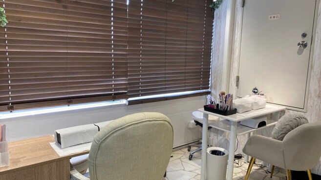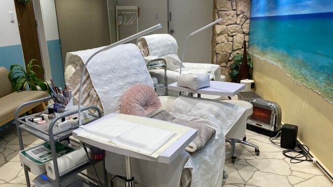 ネイルはリクライニングチェアとデスクでの施術。
