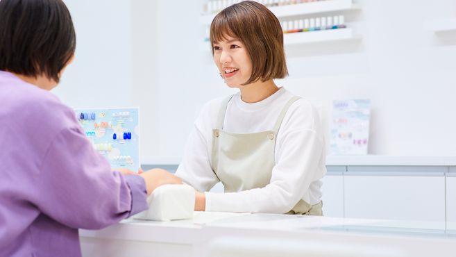 常に向き合って施術するネイルのお仕事。技術を提供する事がメインですが、カウンセリングや会話もとても重要です。沢山の接客上手な先輩がいるので、技術も接客も見て、聞いて学べます。レセプション業務やカウンセリングを身に着ける事で、好かれる・売れるネイリストを目指します。