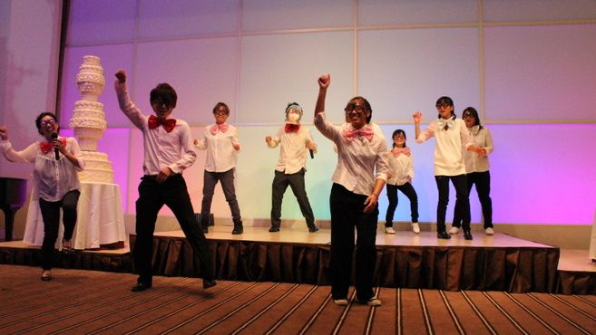 KIT HAIRは、本当にチームワークが良い第2の家族の様です!写真はスタッフの結婚式の余興でみんなで嵐を踊った時の思い出の写真です!やる時はやる!遊ぶ時は思いっきり遊ぶ!そんな仲間が一つになってチーム一丸となってがんばってKIT HAIRを盛り上げてます(^_^)/