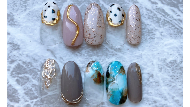 ネイル部門では、画像のお持ち込みのお客さまも多数いらっしゃり、デザインネイルが多いです。