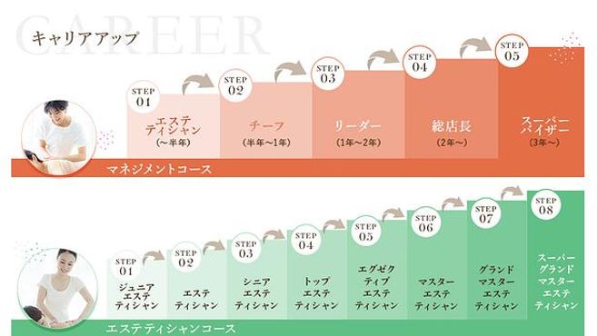 「結果を出すエステ」でありながら、未経験からでも多彩な技術を身につけ、スキルアップできる環境が魅力です。