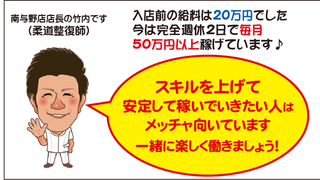 手技も「今までのスタイルを変えずに働ける」というところも自分の力を試せる良い経験だと思います。
