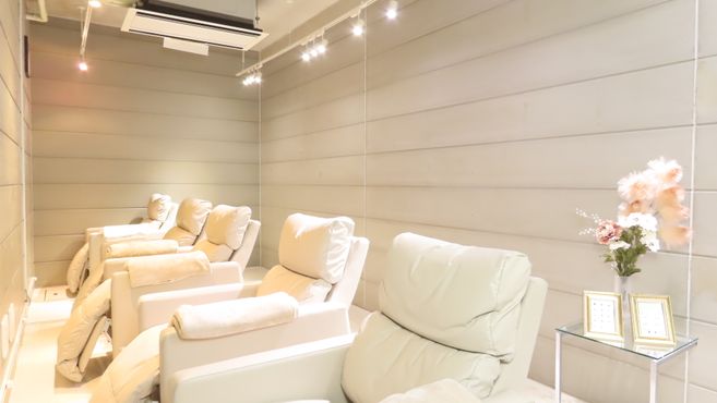 - 白を基調とした、シンプルで柔らかく、清潔感のあるサロンです。