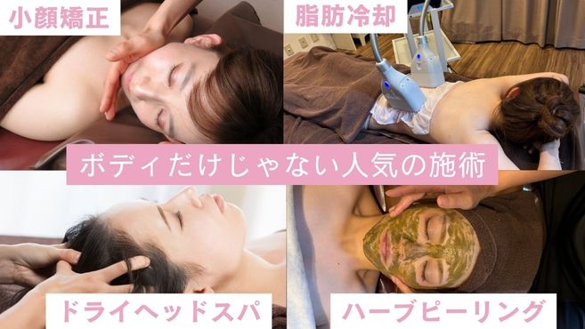 インドエステ以外にも、小顔矯正や脂肪冷却、ドライヘッド(頭蓋骨矯正)、ハーブピーリングも人気です。
