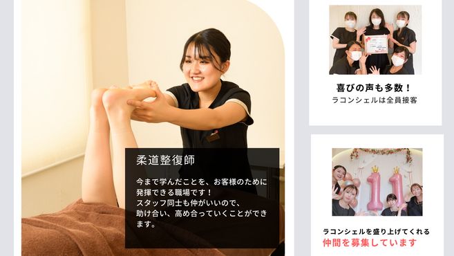 柔道整復師や鍼灸師などの国家資格を持ったスタッフやエステティシャン、元アパレル関係などの未経験者など幅広く活躍しています。