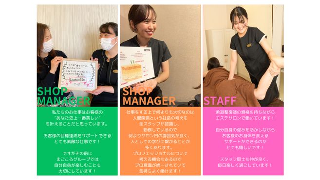 未経験からスタッフ・お客様の支持を多く頂き現在店長として大活躍しているエステティシャンも在籍中です♪