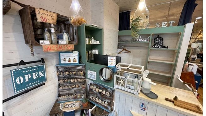 西海岸風のインテリアがポイントの、リゾート感あふれるおしゃれサロン♪雑貨や小物がたくさん飾られていて、インテリア好きなお客さまにも大好評!毎日ワクワクできる空間です^^