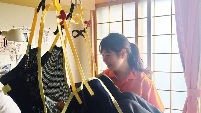 リフト介助をしているところ。