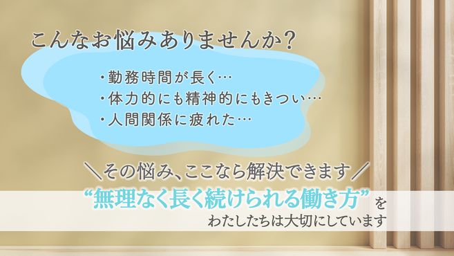 「無理せず、自分らしく長く働きたい」──そんな方にとって、私たちはきっと“ちょうどいい居場所”になります。