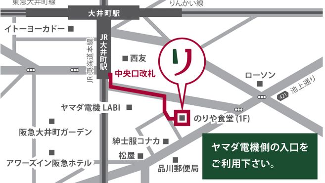 東急大井町線の大井町駅・臨海高速鉄道の大井町駅からも徒歩約4分程度。