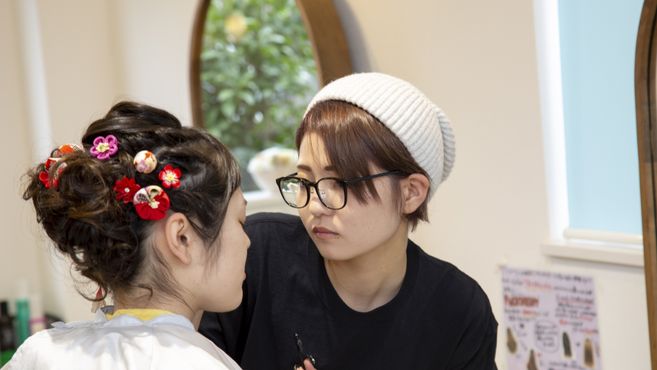 アイリスト兼アシスタントをしている後藤です。私は学生時代にアルバイトをしていたので最初は美容師は大変だというイメージしかありませんでした。たしかに大変な事もたくさんありますが、出来たときにはしっかりと褒めてくれる上司や、へこんだときには励ましてくれるパートさん達に支えていただいています。働いていてとてもやりがいもあるし、とてもいい雰囲気の職場です!ぜひ一緒に働いてくれるスタッフを大募集しています!ご応募お待ちしております!