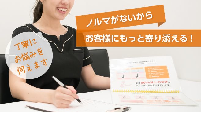 お客様一人一人に親切丁寧な接客はもちろん、綿密なカウンセリングと厳しい研修を受けた一流のスタッフの技術とサービスもとにお客様のお悩みを解決いたします。医療的な知識も学んだスタッフが、安全性・接客面に徹底したプランでご対応。ひとりひとりの肌に合わせた丁寧な施術、真心のこもったサービスを提供し、信頼して通えるいただけるよう心がけております。