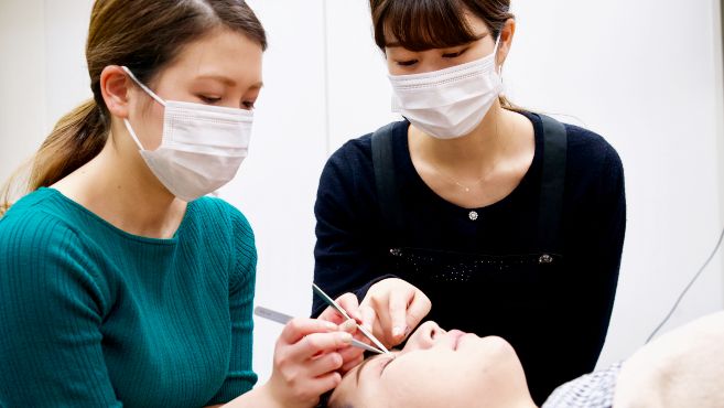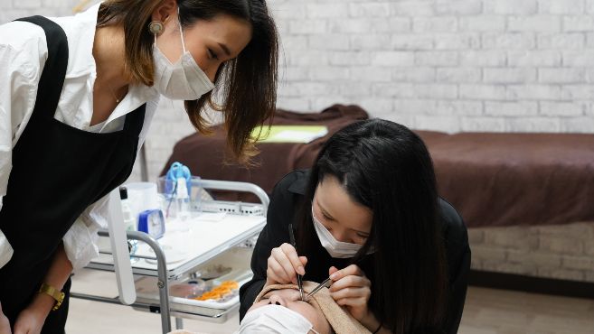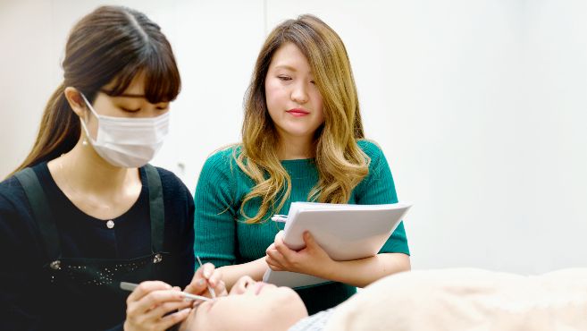 デビュー後も、今注目の「パリジェンヌラッシュリフト」「アイブロウ」「バインドロック」など、最新メニューの研修を