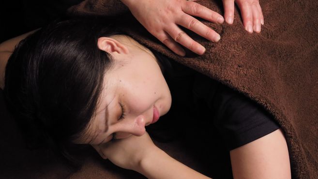 基本の技術が身に付いた方は、本番さながらのトレーニングをします。もみほぐしのテクニックを使って、筋肉や靭帯・腱をほぐし、全身の疲れを取り除くリラクゼーションスキルを身につけます。
