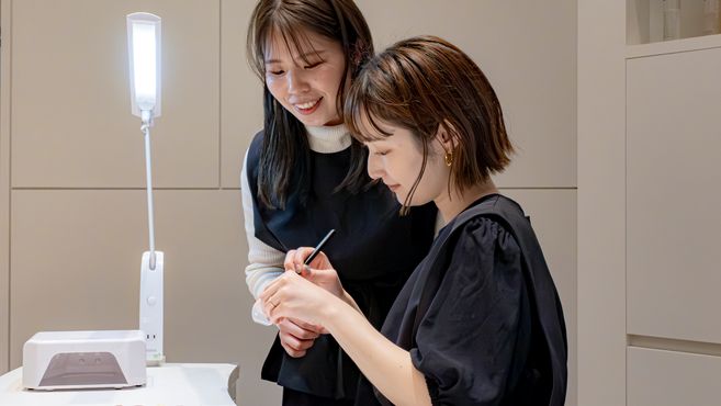 お客様と直接触れ合うことで嬉しいお言葉をいただけたり、アイリスト・ネイリストとしての楽しさややりがいを早い段階で実感することができます✨