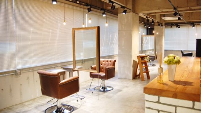 最寄り駅から徒歩1分の、繁華街すぎず、住宅街すぎない、落着いた町並みの好立地で店内はコンクリート調で、緑も有り、明るいオシャレな空間♪まるで "隠れ家でリラックス♪" そんな雰囲気のあるサロンです!